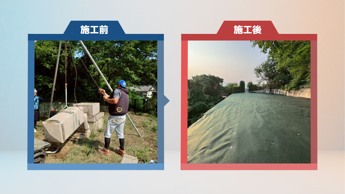 施行内容:お墓1基分+基礎全撤去+草刈り+防草シート全面