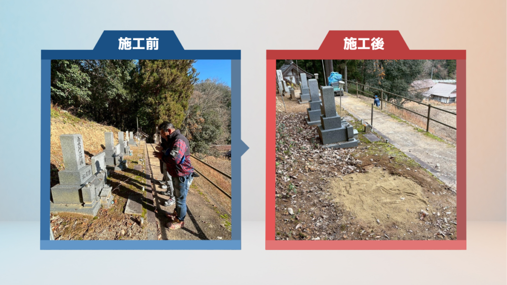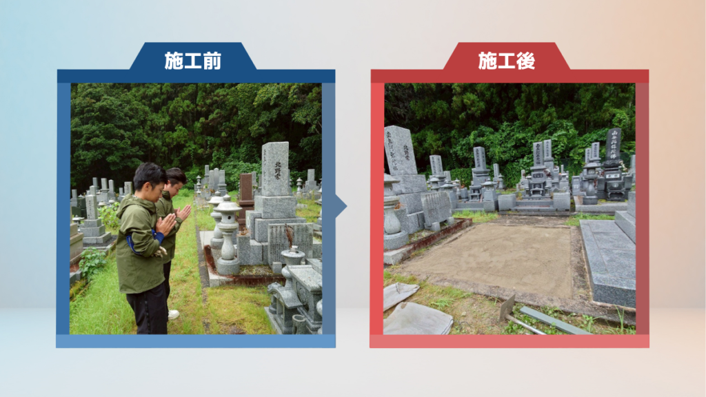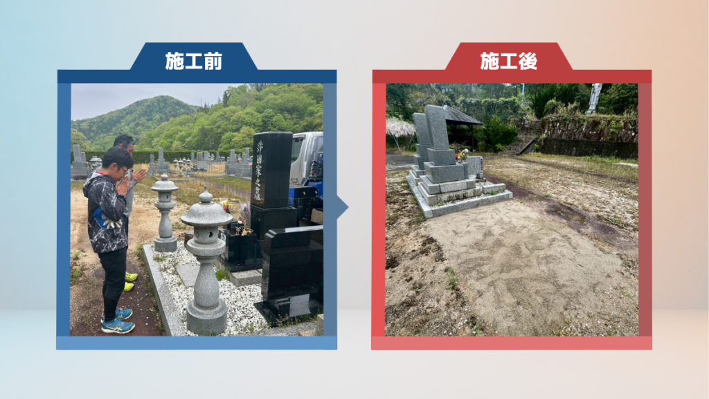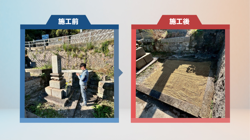 【大竹市 玖波でお墓じまいを行いました。】 プラン:通常プラン 1基 施行内容:お墓1基分+防草工事(固まる土施工) 合計 税込27.5万円 本日は大竹市 玖波 でお墓じまいをさせて頂きました。 今回はHPを見て頂き、ご相談、ご依頼頂きました。 現場は... -