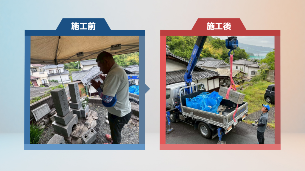 【呉市 音戸町でお墓じまいを行いました。】 プラン:通常プラン 1基+仏壇じまい 施行内容:お墓1基分+仏壇じまい 合計 税込44万円 本日は、呉市音戸町でお墓じまいをさせて頂きました。 今回のお客様はGoogleの口コミを見ていただき、ご依頼頂きました... -