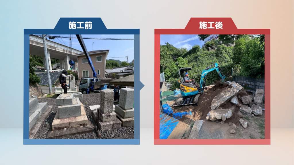 【広島県 安芸郡 海田市でお墓じまいを行いました。】 プラン:通常プラン 1基 施行内容:お墓1基分+法名板+墓所内玉垣等撤去 合計 税込35万円 本日は、安芸郡海田市にてお墓じまいをさせて頂きました。今回は、お墓の建てる時からご依頼頂いている海... -
